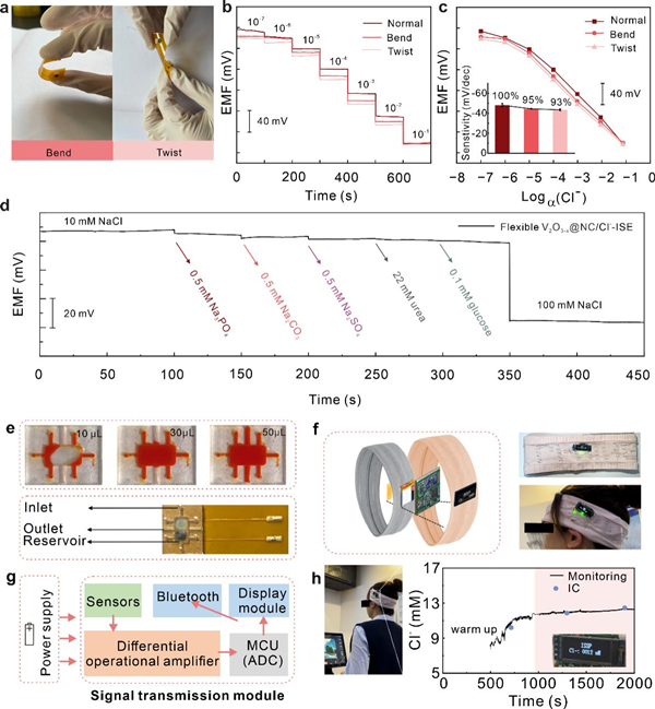 固体所研发基于全固态离子选择性电极的集成发带实现汗液氯离子实时监测