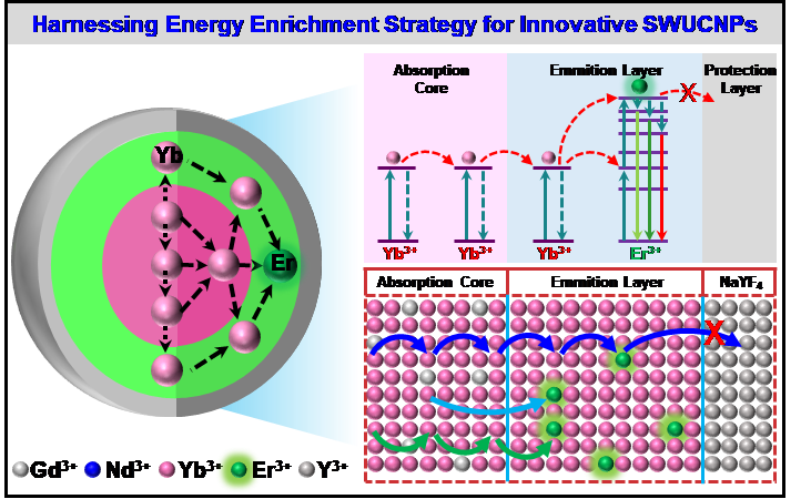 图2. 新型SWUCNPs发光结构和发光机理图。